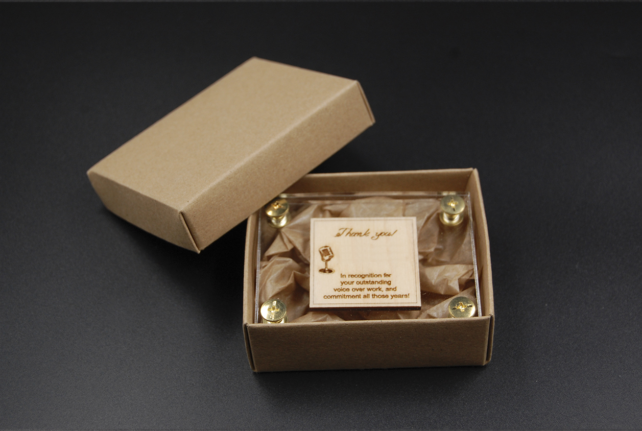 Βραβείο press papier από plexiglass και ξύλο με διακοσμητικές βίδες.